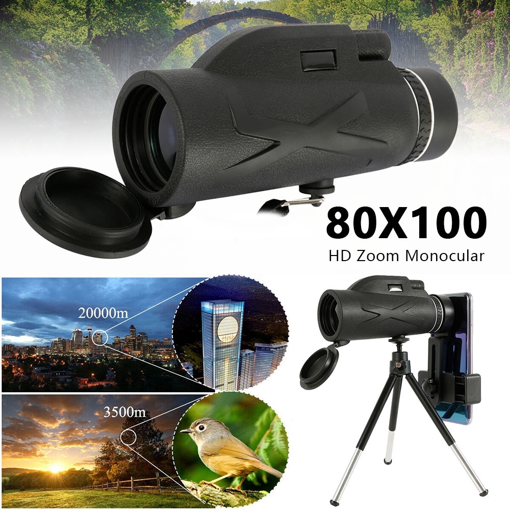80x100 Zoom Waterproof HD Optical Lens Monocular Telescope with Triangle Bracket Phone Clip | Shopee Singapore