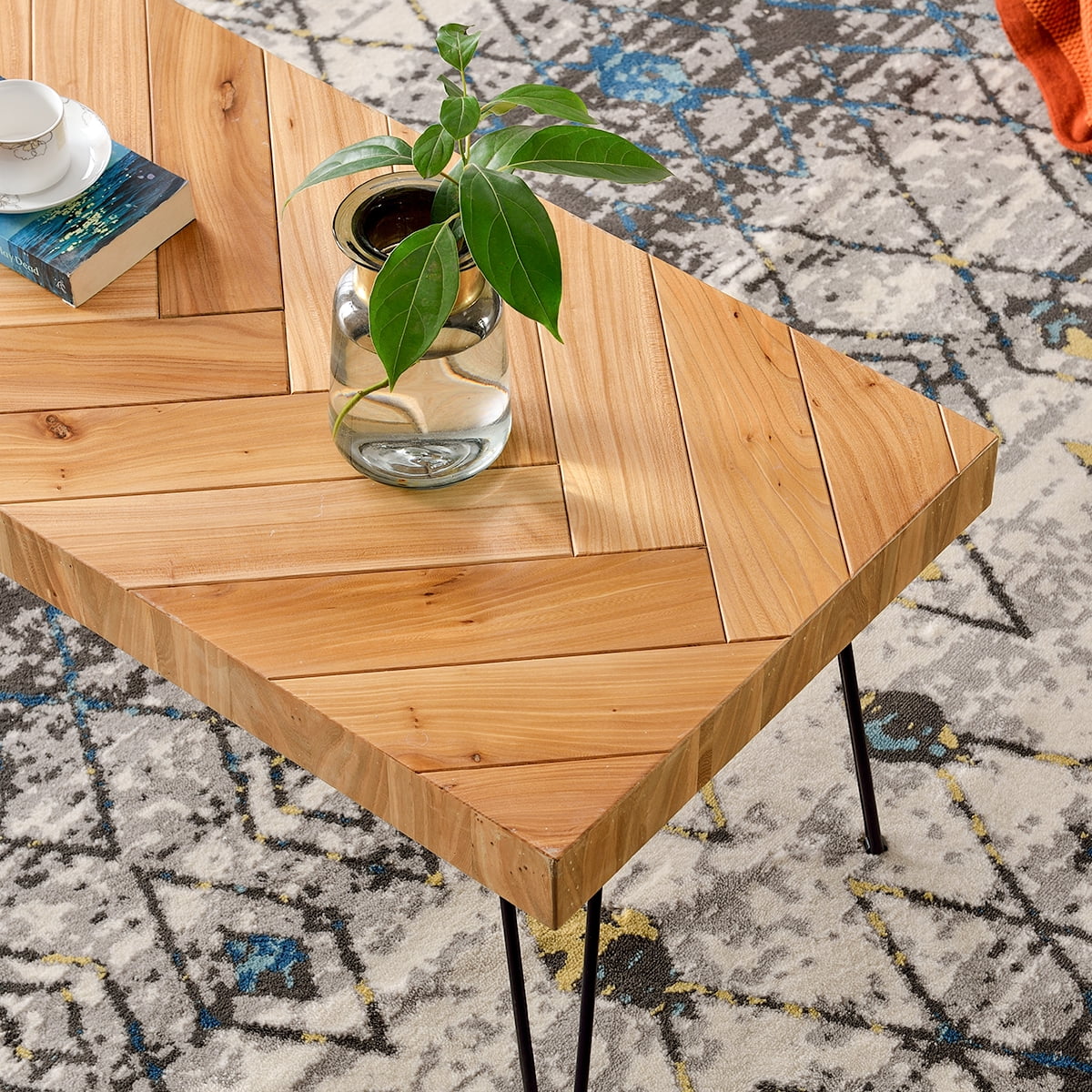 Clearance Wood Coffee Table 43 3 Modern Coffee Table With Metal Hairpin Legs Natural Old Elm Cocktail Table With Chevron Pattern Sturdy Glossy Finished Rectangular Center Table For Living Room Walmart Com Walmart Com