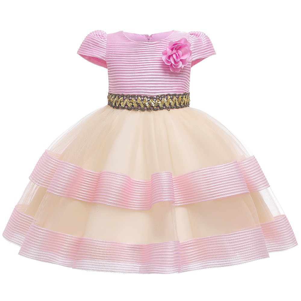 Girls Dress Wedding Birthday Party Princess Dress Striped Short Sleeve Flower Mesh Children Dress 3 12y Shopee Malaysia