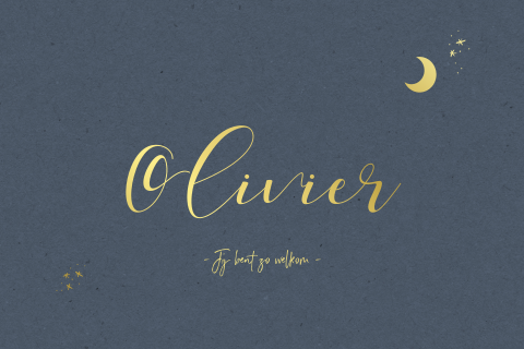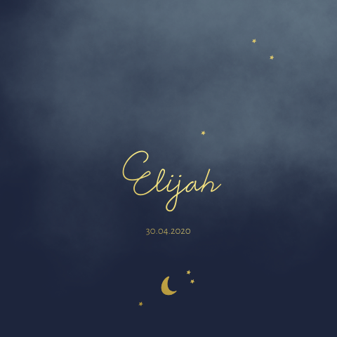 Geboortekaartje jongen donkerblauw met maan en sterren in goudfolie