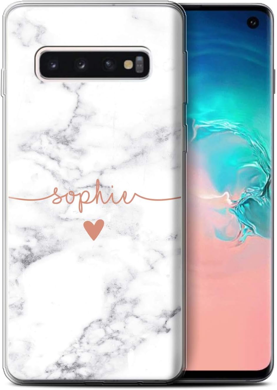 Eswish Personalised Phone Case For Samsung Galaxy S10 Printed Custom Rose Gold Pink Marble Heart Stamp Handwritten Design Initial Name Diy Transparent Soft Flexi Gel Tpu Cover Amazon Co Uk Computers Accessories